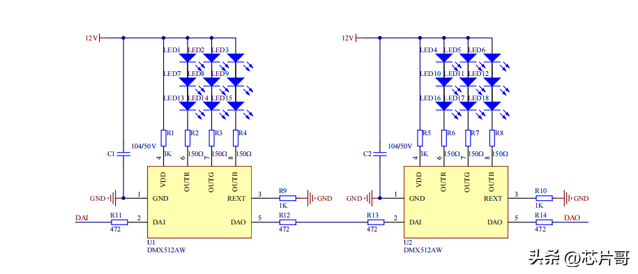 02 DMX512AW芯片驱动LED电路
