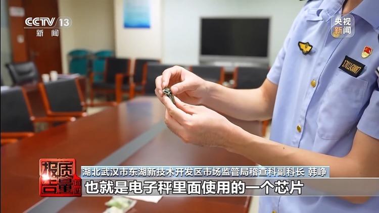 湖北武汉市东湖新技术开发区市场监管局稽查科副科长韩峥:这个是当事人改装作弊功能的“鬼秤”最关键核心的一个元器件,也就是电子秤里面使用的一个芯片。通过将原有的正常功能芯片,更换成他们自己采购来的,具有作弊功能芯片,来实现相应的作弊功能。