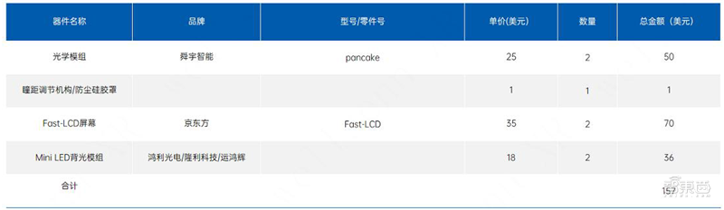 Quest Pro VR一体机光机BOM清单