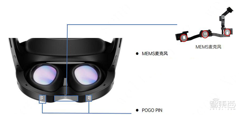 Quest Pro在底框靠近鼻托处放置了三颗指向性MEMS麦克风(MIC),防尘防水抗冲击,用于语音交互,三阵列MIC可以有效降噪,去除杂音。