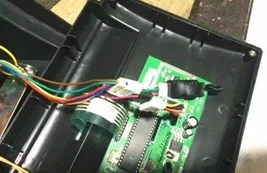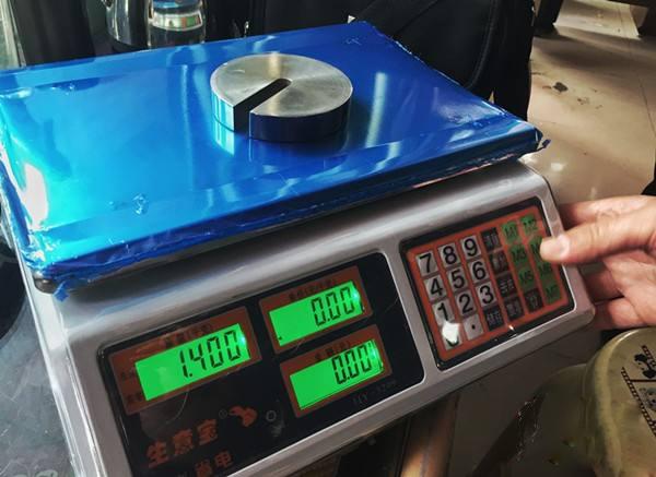 经过检查,电子秤内部原有芯片已经被破坏,现有的芯片是经过改写的,经过测试,改写过的电子秤重量显示要比正常的多,1千克标准法码显示1.2千克,典型的‘作弊秤’。