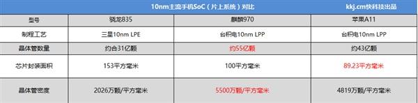 麒麟970的100平方毫米来自柏林发布会的官方Spec宣传单,骁龙835的数据来自公开资料。