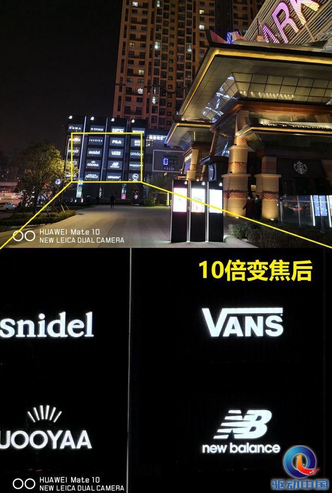 这是我们对华为Mate 10进行了较为苛刻的夜景灯箱场景9-10倍的放大测试样张: