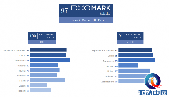 近日,全球权威相机/镜头评测机构DxOMark针对亮光环境、暗光环境、变焦及视频拍摄对华为mate10 pro进行了全方位的拍照能力评测,评测结果显示为华为Mate10 Pro的拍摄综合得分97分,其中静态拍照的单项得分高达100分,。