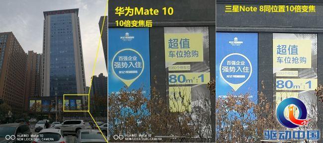 我们继续和三星Note 8的高倍对焦进行多轮对比,华为Mate 10的效果呈现地要更好,比如这组对比中可以明显看出,华为Mate 10的噪点较少,细节更丰富,而三星Note 8与之相比,锐化和涂抹感较重。