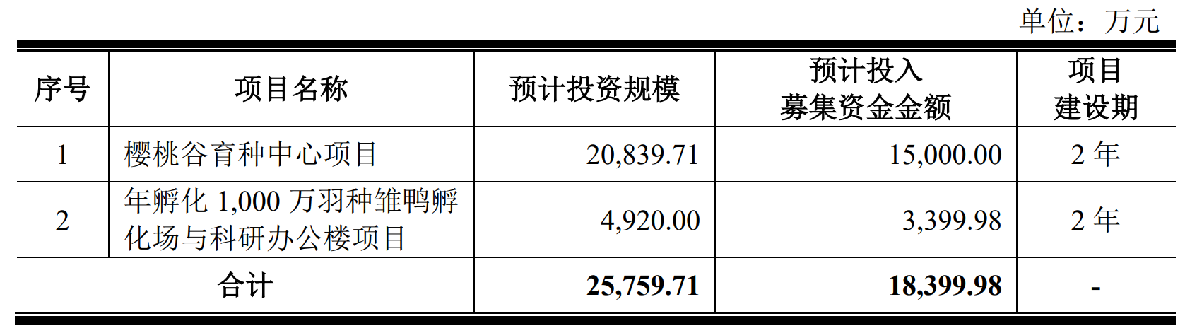樱桃谷募集资金拟投资项目概况