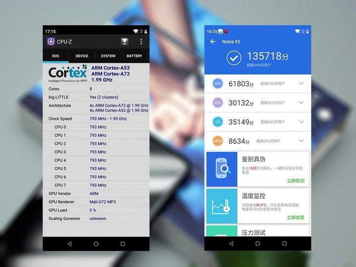 来看一下联发科P60性能表现,首先是跑分测试,在安兔兔平台,诺基亚X5跑分为135718分,其中CPU子项得分为61803分,表现较为强势,而GPU部分得分30132分,分数较为一般。总的来看在千元机价位上联发科P60是个非常好的选择。