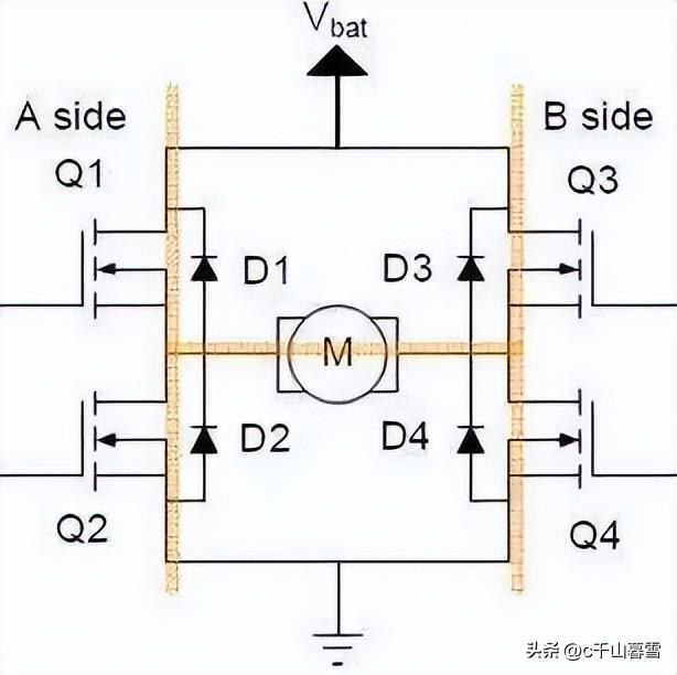 H桥是一个典型的直流电机控制电路,因为它的电路形状酷似字母H,故得名曰“H桥”。