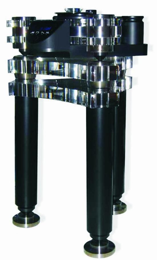 转盘分为上、下两层主副碟盘结构,重达19公斤的主转盘,由特别加工过的SU304无磁钢材车制而成。上层副转盘则有三种材质可以选择,分别是A7075超硬铝合金、SUS316L不锈钢、以及黑色压克力材质,三种材质的不同声音特性提供给用家选择。采用低推动电压的超稳定超低噪的AC同步马达,并由DC监控线路每圈1 5次测量并作出调节以确保精确转速,并可以进行非常精密的转速微调。TechDAS采用号称史上最安静的马达推动式气泵,再加上特制橡胶悬浮系统,使背景静深如海。马达,气泵,气压控制器,压缩气过滤器等4组独立供电,确保最高稳定性。全电脑精密监控调节系统,使操作变得轻松。