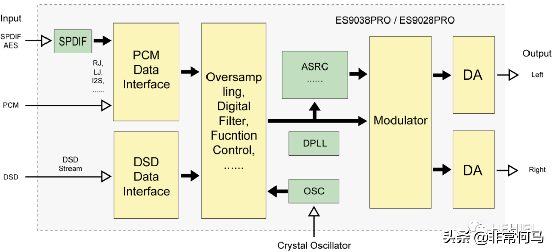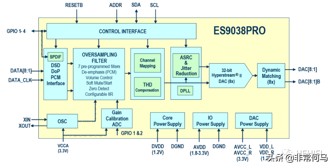 ESS公司旗舰ES9038PRO框图,摘自《 SABRE PRO ES9038PRO Datasheet》,ESS March 5, 2019