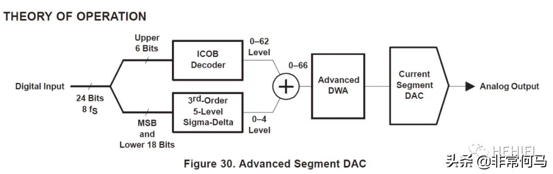 Texas Instruments的“先进分段DAC”原理图,摘自《DSD1794A Datasheet》Texas Instruments, NOVEMBER 2006