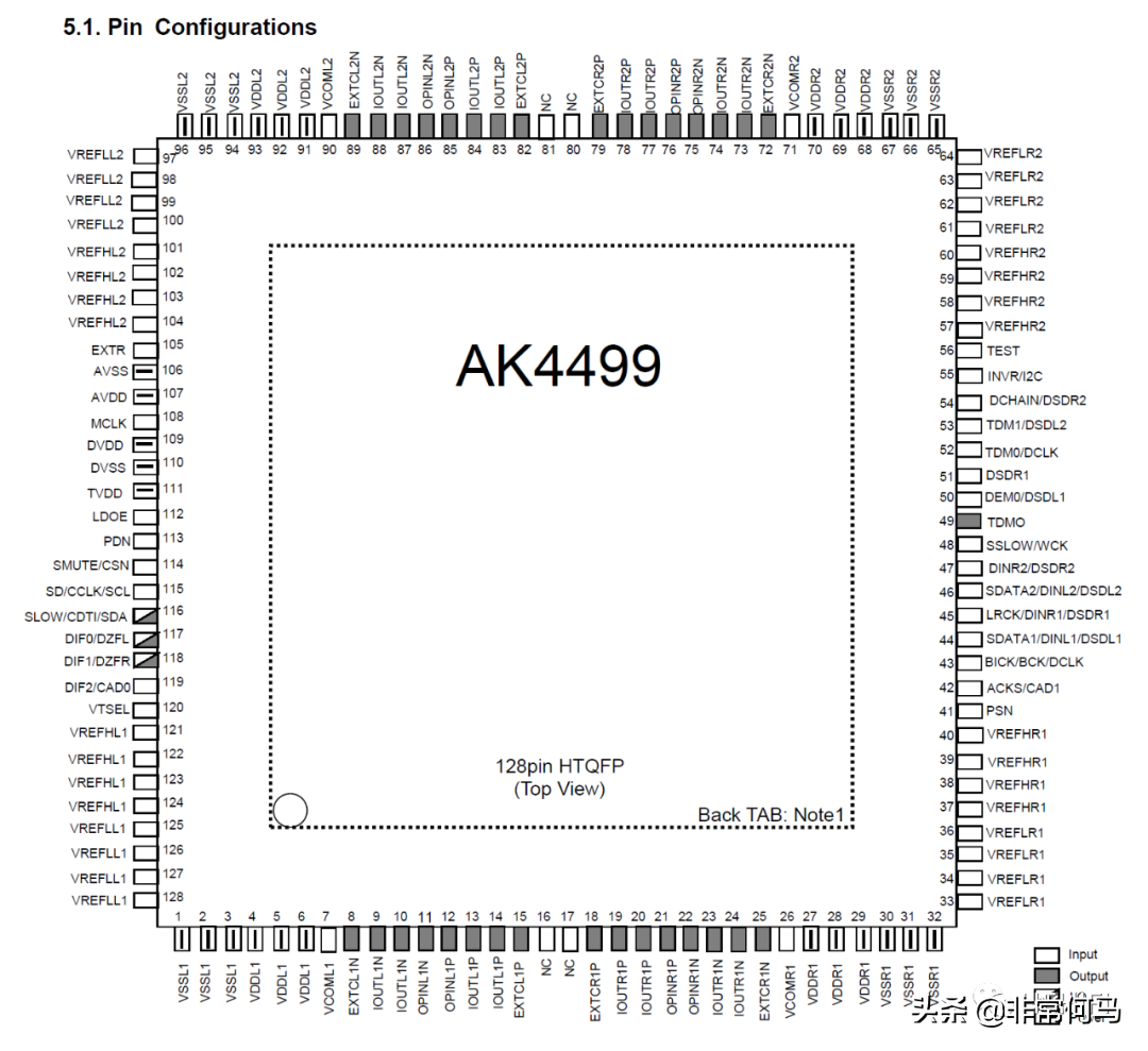 引脚最多的AKM新旗舰AK4499,摘自《 AK4499 Premium Switched Resistor 4ch DAC》, AsahiKASEI, 2019/02