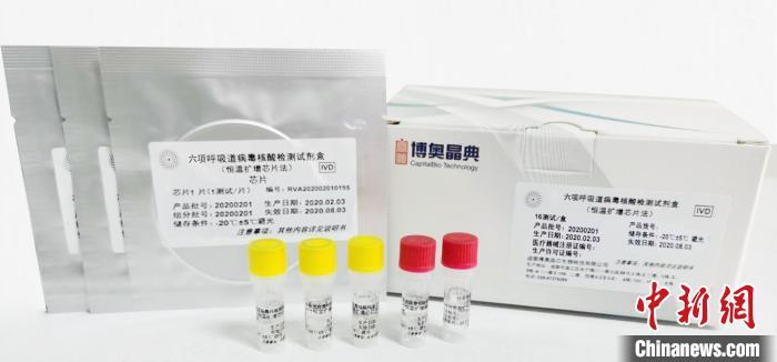 该病毒核酸检测芯片试剂盒由博奥生物集团旗下博奥晶典联合清华大学、四川大学华西医院共同设计开发,包括新冠病毒(2019-nCoV)在内的六项呼吸道病毒核酸检测试剂盒(恒温扩增芯片法),英文名:Respiratory Virus Nucleic Acid Detection Kit (Isothermal Amplification Chip Method)。
