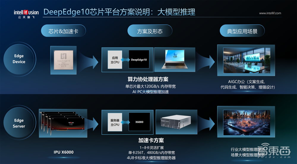大模型推理方面 ,在Edge Device上,Edge10可作为当前信创PC的算力协处理器方案,把大模型的能力应用到传统信创PC上,让信创PC能跑AIGC办公应用,包括文案生成、代码生成、智能决策、增强设计等 。
