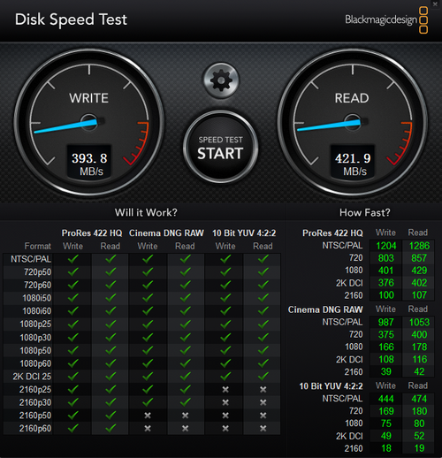 我们使用Black magic Disk Speed Test来测试此款PSSD的读写速度,测试结果如下,两款硬盘的读写速度没有明显差别。