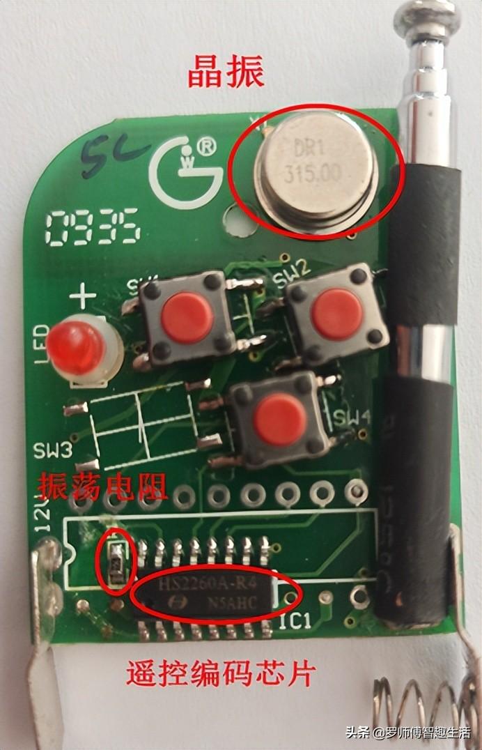 焊接码:是由8位不同的地址码组合而成的,主要是采用PT,SC,HS,LX (2260/2262/2264)等编码IC芯片,使用前需要对编码IC的地址码脚进行焊码,地址码有三种焊接状态(高电平、低电平、悬空)。即3的8次方,可以实现6561种组合。所配对的接收解码芯片是PT,SC,LX,HS(2270/2272/2294)等,一个接收端可配几个,几十个,几百个无线遥控器。常用于道闸遥控器,伸缩门遥控器,卷帘门遥控器,无线遥控灯具开关等。优点是:稳定,缺点是:不安全,容易重码,而且很容易被复制。焊接码遥控器如下图2-41。