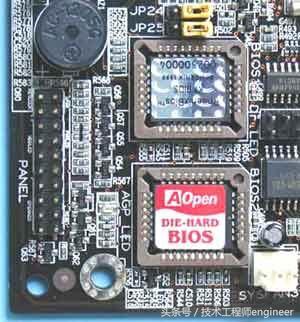 早期的BIOS多为可重写EPROM芯片,上面的标签起着保护BIOS内容的作用,因为紫外线照射会使EPROM内容丢失,所以不能随便撕下。现在的ROM BIOS多采用Flash ROM(快闪可擦可编程只读存储器),通过刷新程序,可以对Flash ROM进行重写,方便地实现BIOS升级。
