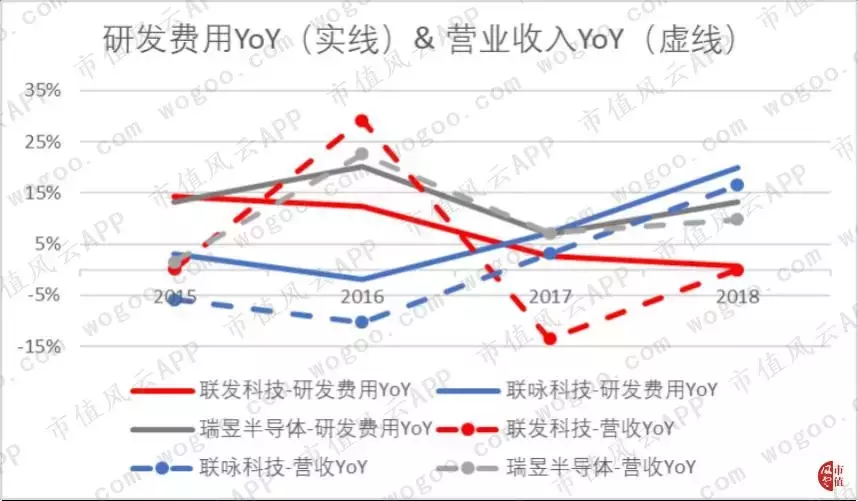 期间,联发科的营收波动较大,联咏次之,瑞昱的营收增幅相对平稳。