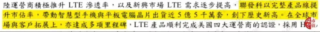 2016年,联发科在年报中表示,要打造“完整产品线”以提升市占率。当年,联发科的智能型手机及平板电脑芯片出货量高达5.5亿套,创新历史新高。