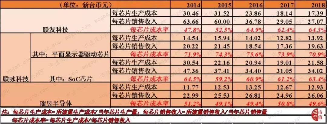 同年,联发科的每芯片销售收入从上一年的新台币60元大幅下跌至新台币36.8元,导致每芯片成本率于当年提高了12个百分点,从上一年的52.5%上升至64.9%。