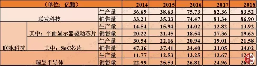 2016年,联发科芯片的生产量和销售量均大幅上升,生产量和销售量分别从上一年的38.6亿颗和35.3亿颗提高至2016年的75.7亿颗和74.5亿颗,几乎是2015年的两倍。