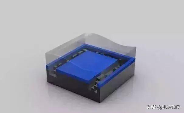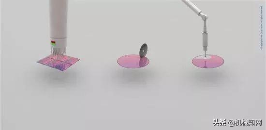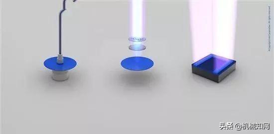 光刻胶(Photo Resist): 图中蓝色部分就是在晶圆旋转过程中浇上去的光刻胶液体,类似制作传统胶片的那种。晶圆旋转可以让光刻胶铺的非常薄、非常平。▼