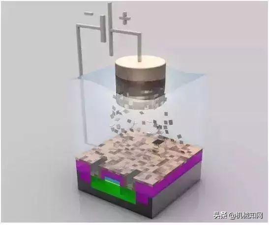 电镀: 在晶圆上电镀一层硫酸铜,将铜离子沉淀到晶体管上。铜离子会从正极(阳极)走向负极(阴极)。▼
