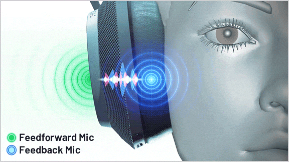 ANC(主动降噪)芯片通过内置麦克风同时监听外部源产生的噪声和耳机扬声器播放的声音。