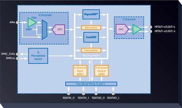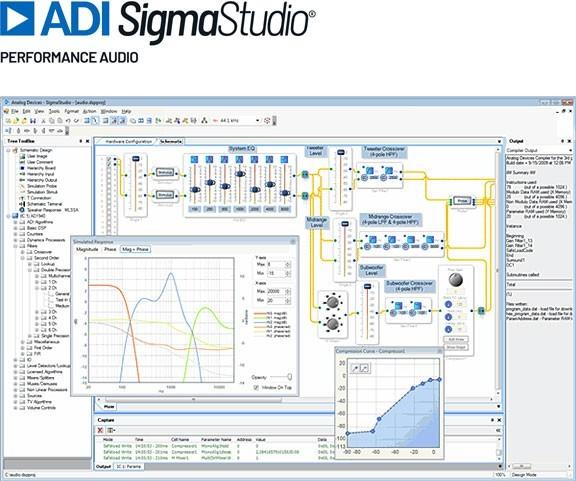 在这里,其实ADI芯片里还藏有一些细节的东西,它可以为用户提供更好的安全性。比如在自动控制领域有一个叫做PID比例积分微分控制逻辑,它的作用是可以根据信号去预测后面信号的走向,它可以通过预测来避免开关车门时耳机会“崩”的一声巨响,实现保护系统的安全性,以及更好的去保护用户的听力。同时,ADI将其Sigma Studio可配置软件集成到系统解决方案中,该工具的优点在于它允许拖放模块来生成代码,因此非汇编语言程序员也可以轻松上手该软件。对于不懂编程但精通声学的客户群体来说,他们也可以使用该软件轻松完成任务。