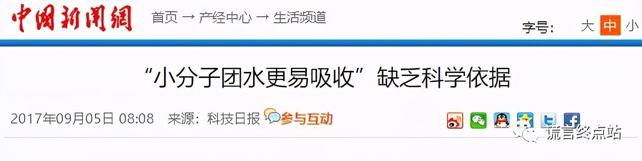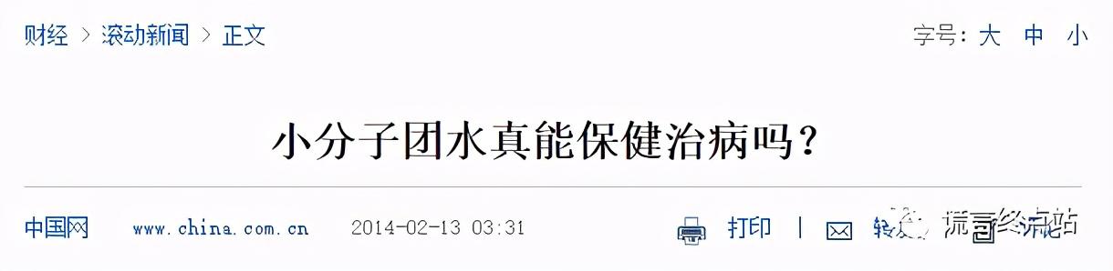 近年来,媒体也多次为“小分子团水”这一骗局辟谣!下面就列举几条: