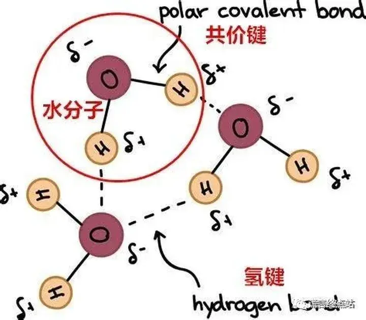 我们先来看一下水的结构,这是学过高中化学的都应该知道的: