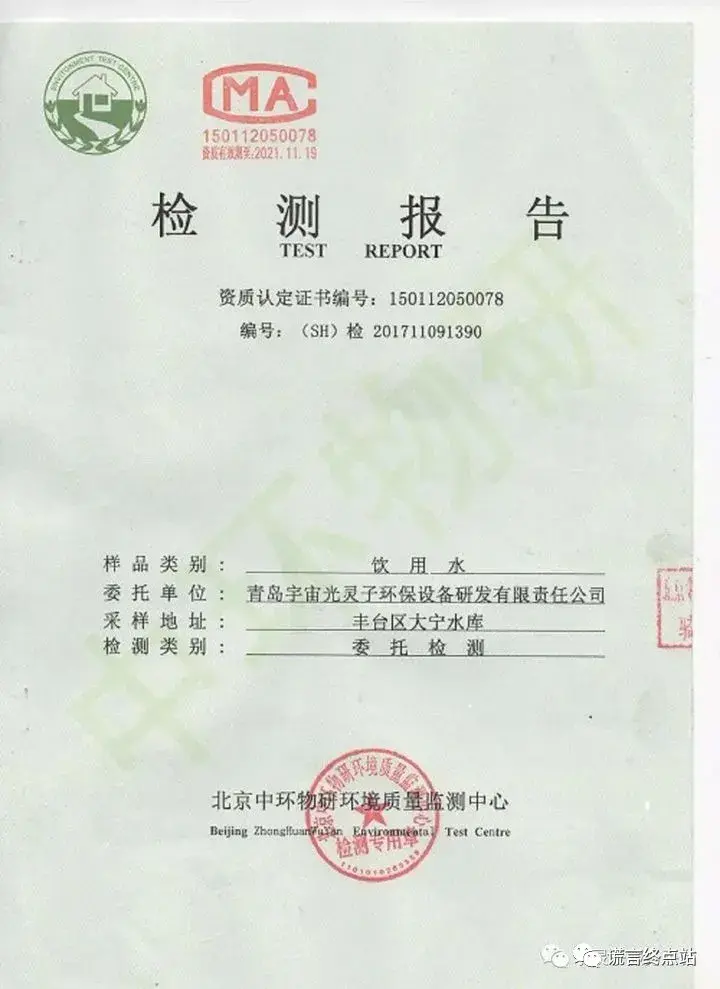 检测项目只是涉及饮用水安全方面(如重金属含量等)的内容,并没有任何与“神奇疗效”方面的检测项目!