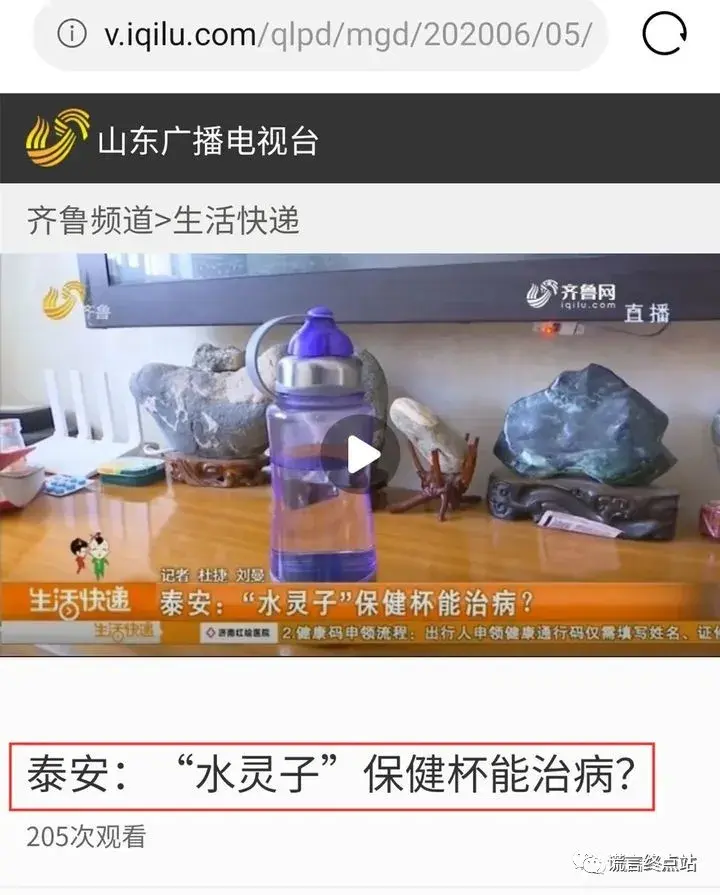 请看《齐鲁电视台》的专题节目:“水灵子”保健杯能治病?