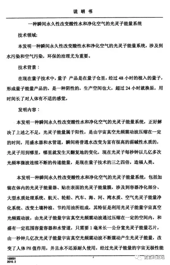 这完全是一份违背科学常识的荒唐专利申请书!