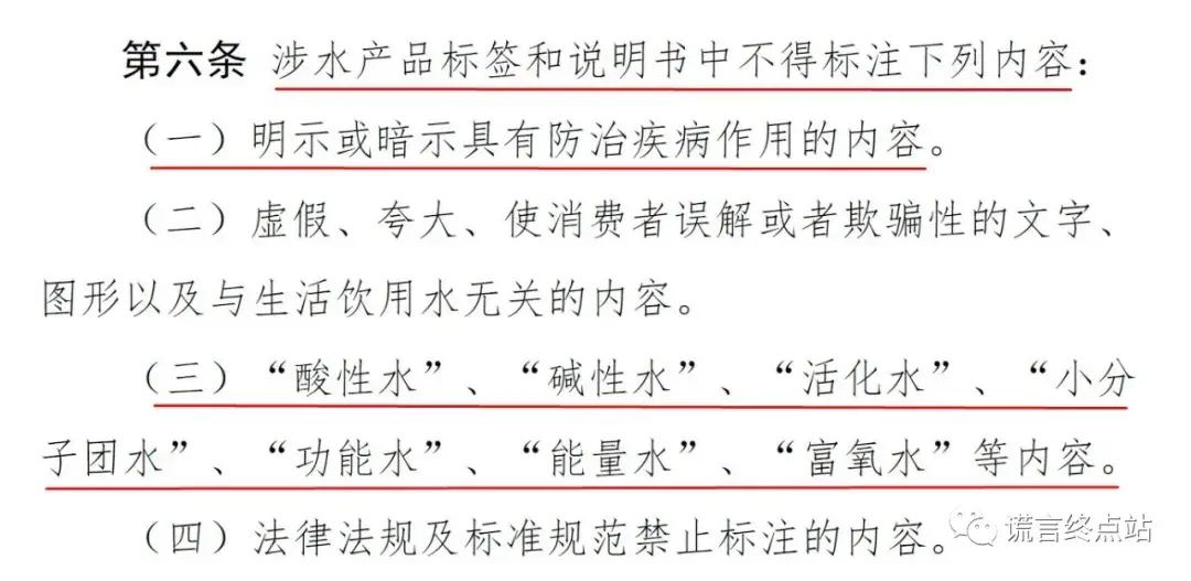 (三)“酸性水”、“碱性水”、“活化水”、“小分子团水”、“功能水”、“能量水”、“富氧水”等内容。