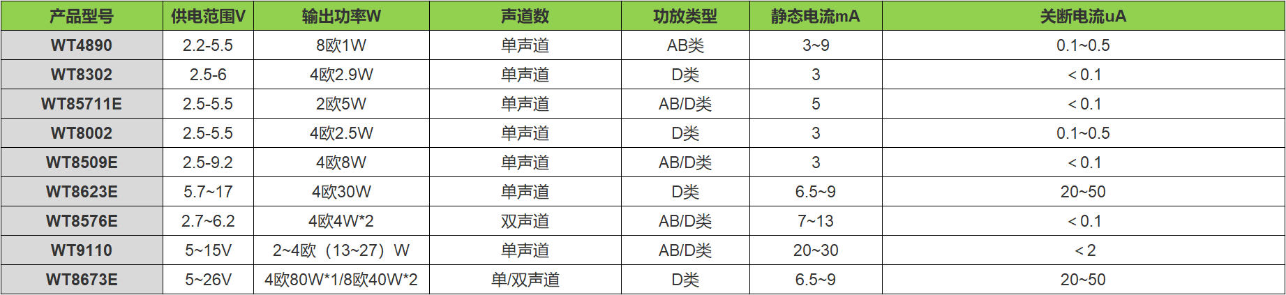 目前音质好的功放芯片有哪些?单声道ABD类类功放IC,WT9110
