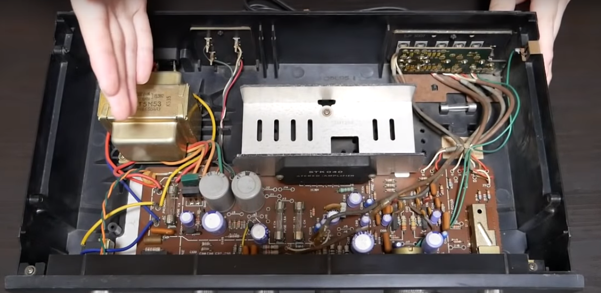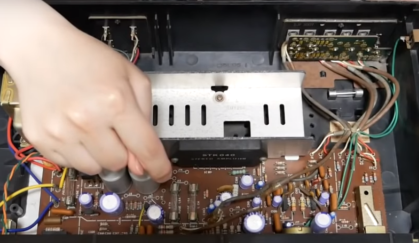 功率放大由一只STK040厚膜电路完成,这么早的机器用厚膜还是不多见的,我以为会是分立原件的呢。