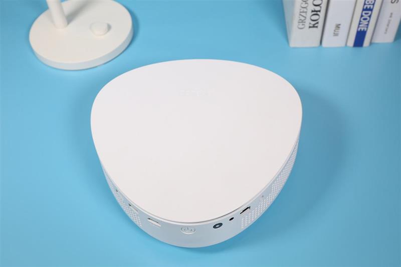 这就是当贝投影D1的整体轮廓,你可以说这是采用水滴型造型,也可以讲它是类心形设计,总归都不是我们此前所见到的或四四方方、或圆润如饼的传统投影设备外观,极富个性。
