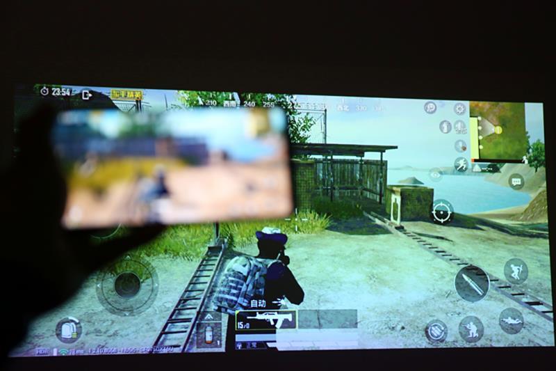 当贝投影D1可以与手机互联无线投屏,同时配合内置立体环绕音响,在360°立体环绕音效当中打游戏比在手机端畅爽许多,特别适合于玩吃鸡类手游,自带物理外挂。