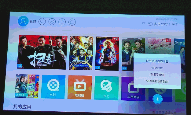 当贝OS极速版系统同样也支持自动对焦、手动对焦,如果不小心碰到了投影仪或者对当前画面的情况不甚满意,如上所示,可以通过语音遥控手动干预对焦。也可直接长按遥控侧边键,就可以实现自动对焦。