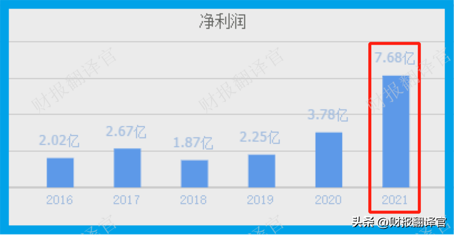 从2019年开始,该企业的历史净利润已经连续三年实现了大幅度的增长,并在2021年以7.68亿元的业绩创出了历史新高。