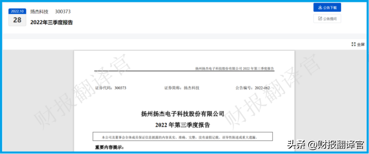 而本文既没有推荐杨杰科技这只股票,也没有说杨杰科技公司有多么的好,而是精炼翻译该企业的财报。