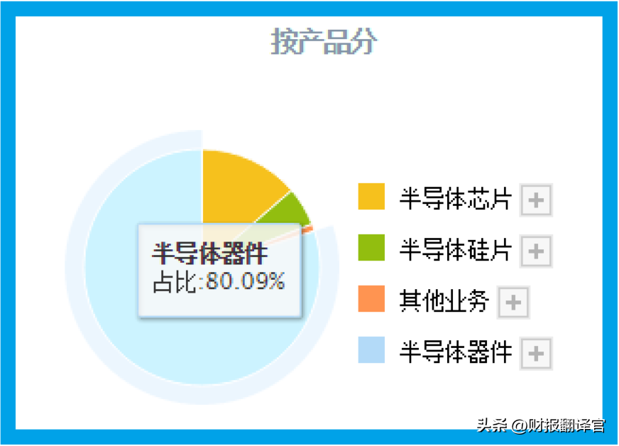 公司半导体器件的收入占比为80%,半导体芯片的收入占比为14%,半导体硅片的收入占比为5%。
