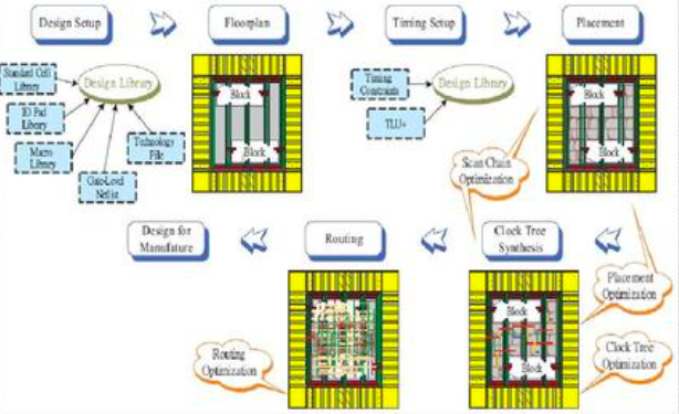 而到了后端设计,就要开始可测性设计。芯片内部往往都自带测试电路,可测性设计的目的就是在设计的时候就考虑将来的测试。如果通过了可测性设计,那就可以进行布局规划了,布局规划能直接影响芯片最终的面积。