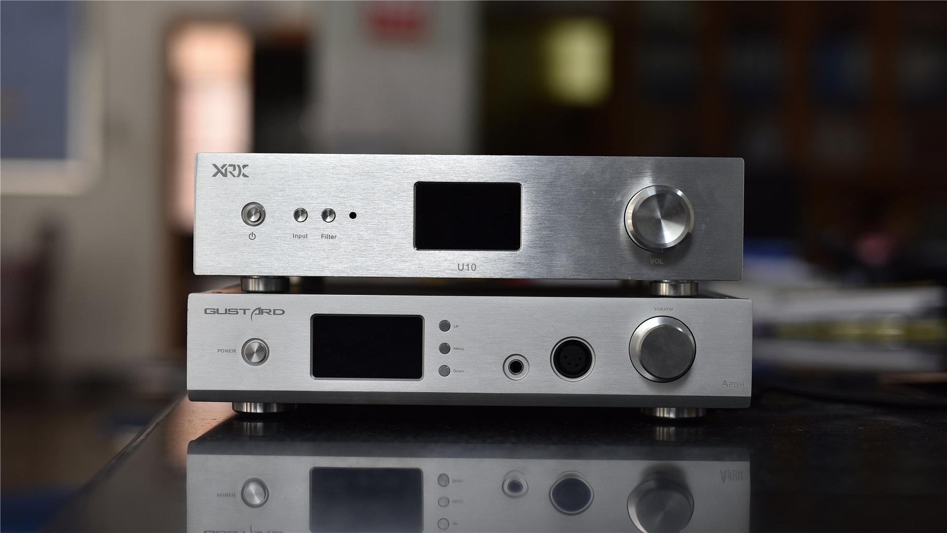 外观上,感觉U10的颜值是一般般的,和我手头的歌诗德A20H都是一样厚度和颜色的机器,做工用料也有点类似,体积和A20H几乎一样,正面面板都是银色金属拉丝+激光雕字,造型上感觉都有一种“国产”味道,感觉主打性价比的机器其实并不是太注重外观的,不过追求声音和性价比的话个人感觉倒是没所谓了。而U10的输入输出口种类上其实很丰富了,有平衡和非平衡的模拟输出以及包括IIS在内各种数字输入接口,这一点还是比较靠谱的,据说在IIS最高可以去到DSD512的原生传输,不过这次我试听的是Amanero 飞秒晶振版,所以声音就以USB口下的对比为主了,配搭的耳放有金波的AMBER II,耳机则是拜雅T1、SUNDARA和天龙D7200等。