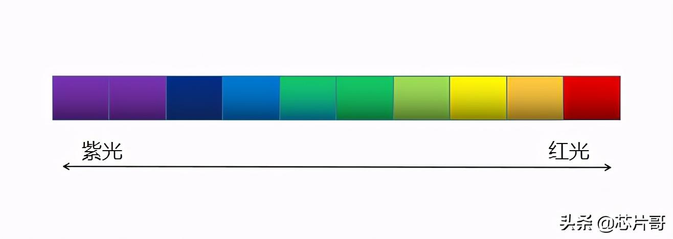 对光学稍微有点了解的小伙伴,都很清楚,光的颜色越靠近红色,它的频率越低;越靠近紫色,它的频率就越高。光的速度是一个常数,频率越高,也就是波长越小。
