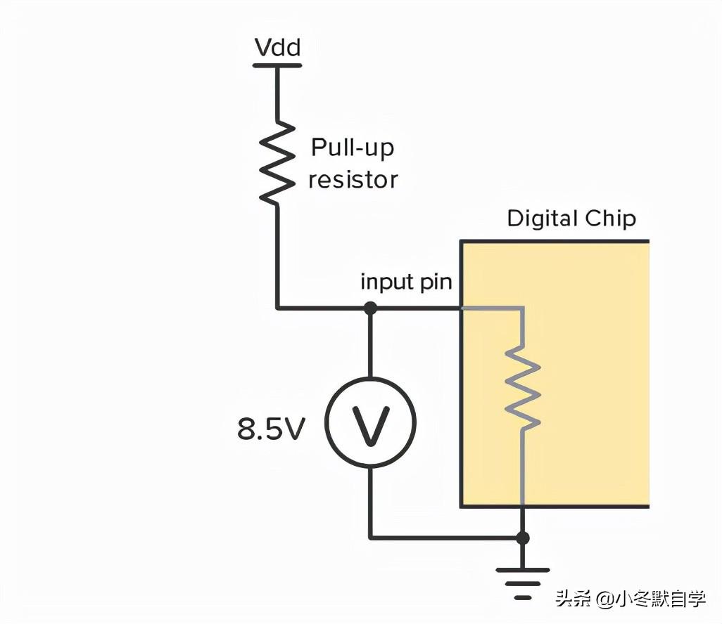 例如,将10 kΩ的上拉电阻连接到芯片的输入端,并测量输入端的电压。