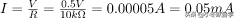 使用这个来使用欧姆定律找到流过电阻器的电流。电阻两端的压降为 9V – 8.5V = 0.5V,因此您可以获得: