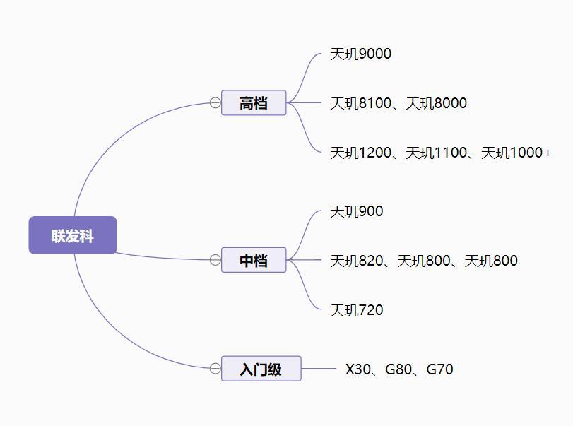 同样的联发科的芯片,也用高、中、低档三个层次来划分一下,对应高通。