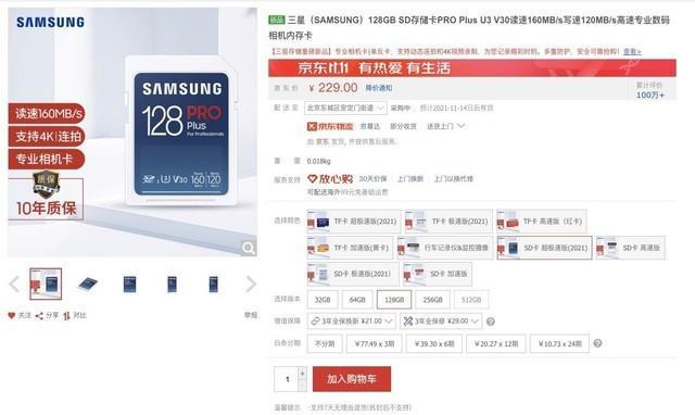 价格方面,三星Pro Plus SD卡也诚意满满,128GB容量仅售199元,折算下来1GB还不到1块钱。